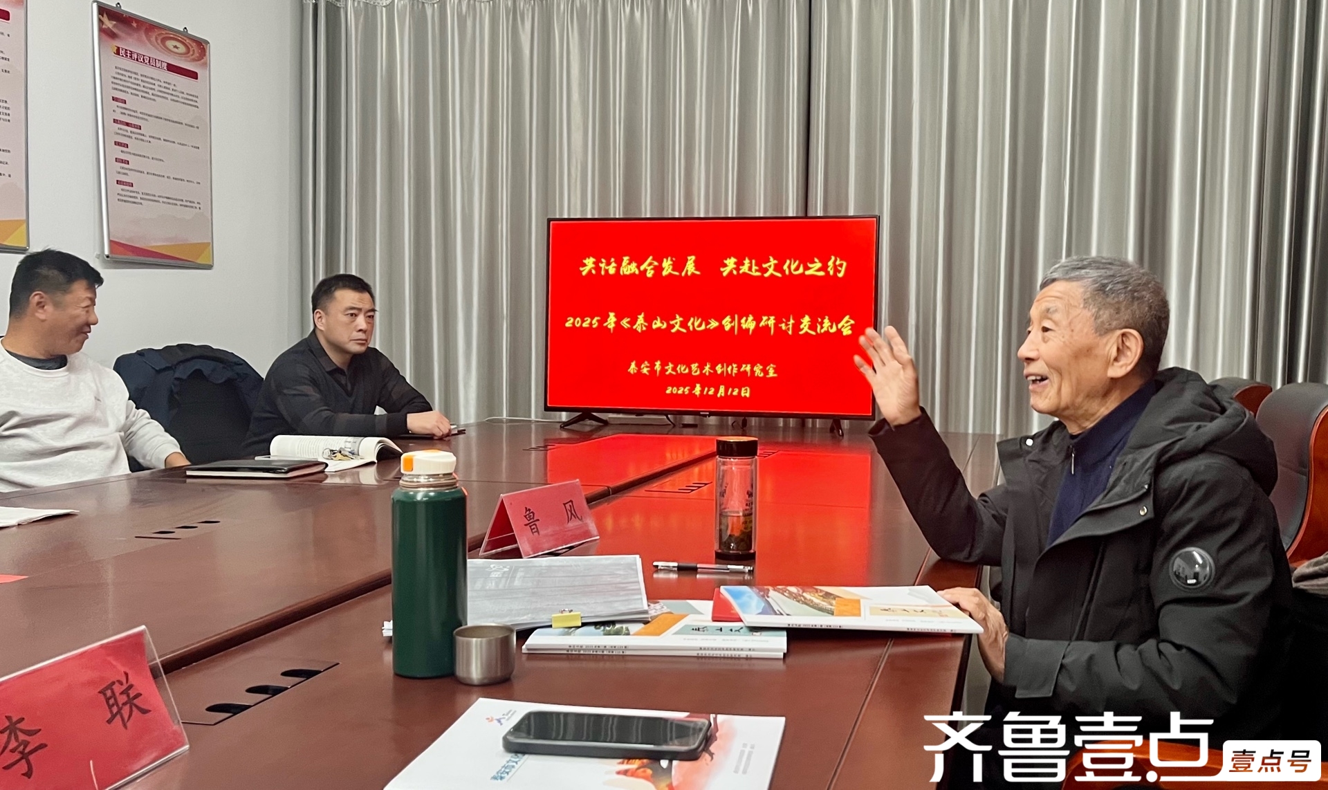 但是,当二〇二五年十二月十二日的阳光,透过窗棂,为泰安市文明艺术创作研讨室的会议室镀上一层暖金色时,一切的寒意都被悄然阻隔。室外有风,室内如春。这方小小的六合,因一场关于泰山文明的盛会而变得崇高而火热。